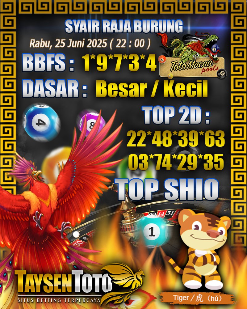 Syair Raja Burung Toto Macau Hari, Rabu, 25 Juni 2025| 22 : 00 WIB
