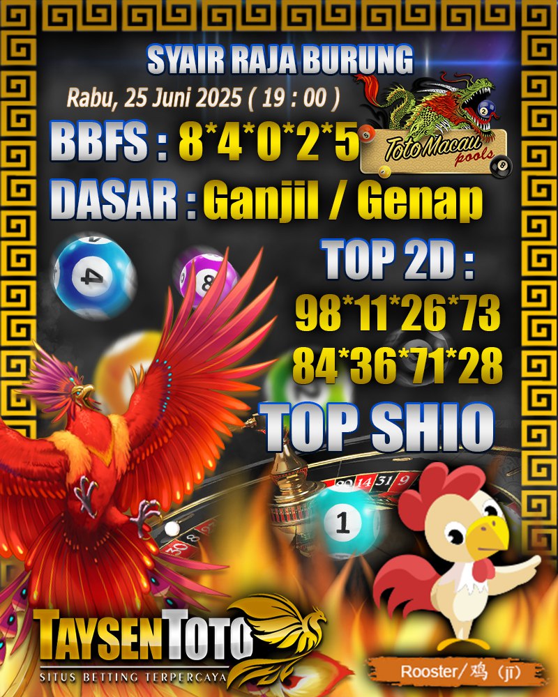 Syair Raja Burung Toto Macau Hari, Rabu, 25 Juni 2025| 19 : 00 WIB
