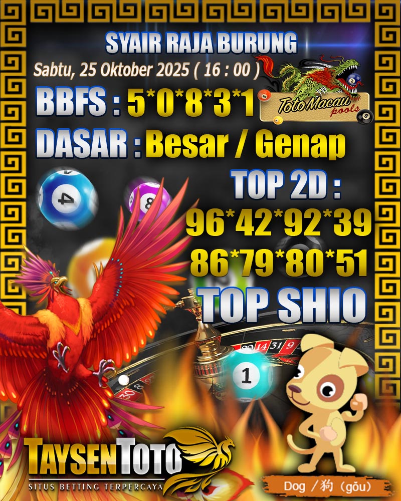 Syair Raja Burung Toto Macau Hari Sabtu, 25 Oktober 2025| 19 : 00 WIB