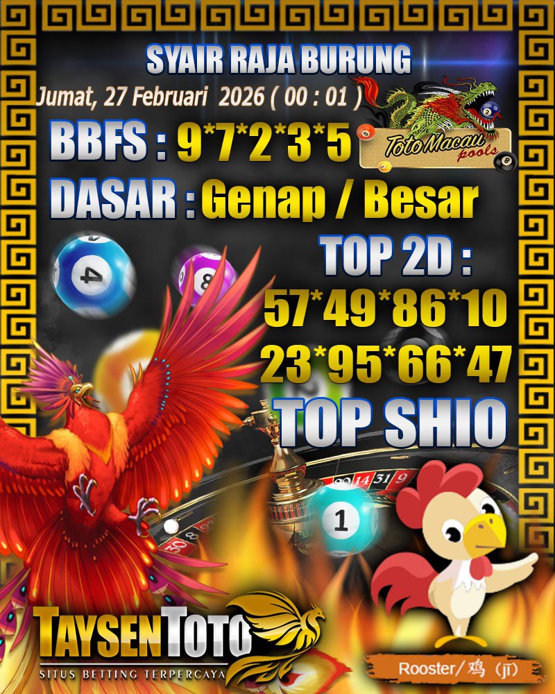 Syair Raja Burung Toto Macau Hari Jumat, 27 Februari 2026| 00 : 01 WIB