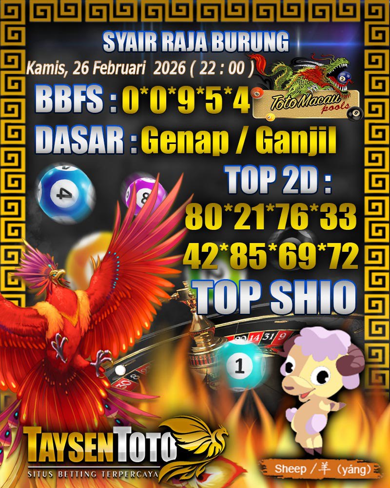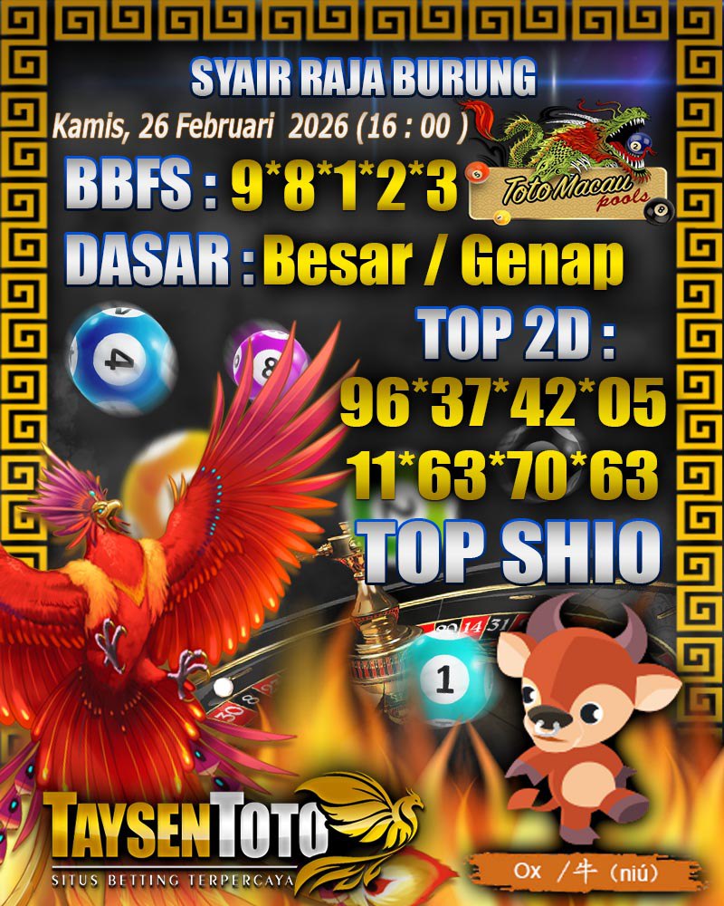 Syair Raja Burung Toto Macau Hari Kamis, 26 Februari 2026| 19 : 00 WIB