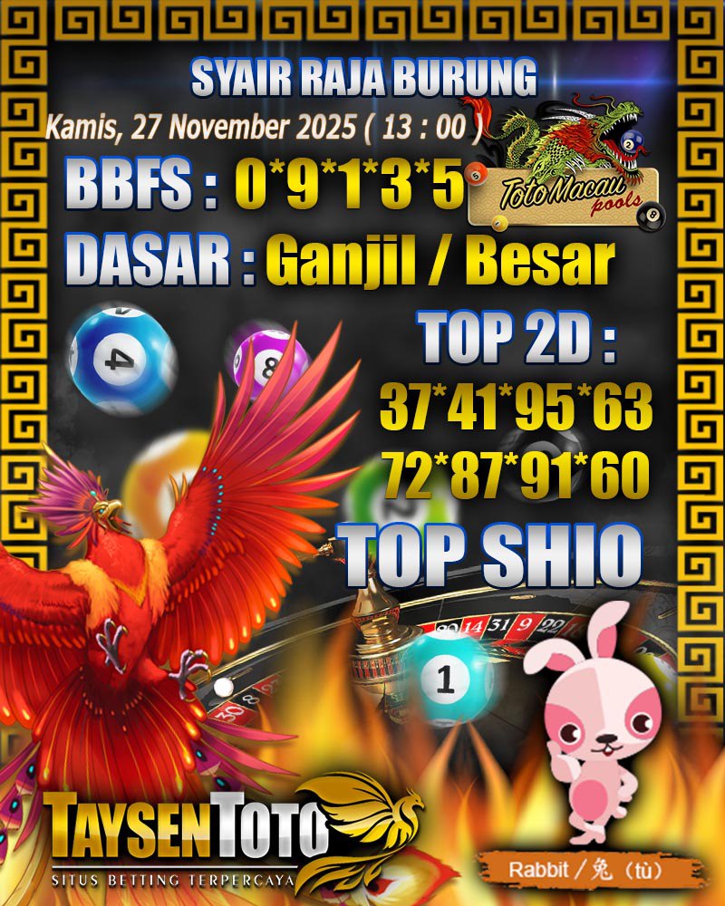 Syair Raja Burung Toto Macau Hari Kamis, 27 November 2025| 13 : 00 WIB