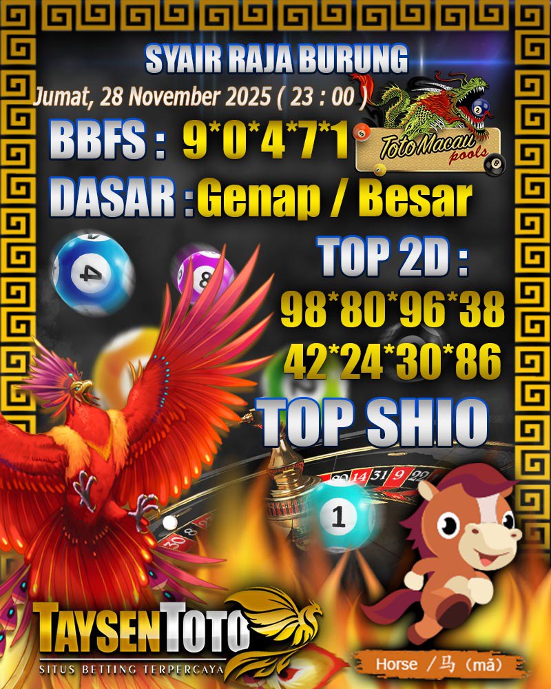 Syair Raja Burung Toto Macau Hari Jumat, 28 November 2025| 23 : 00 WIB