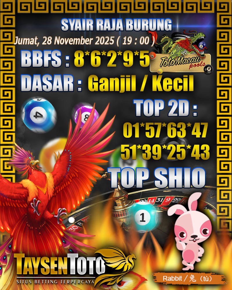 Syair Raja Burung Toto Macau Hari Jumat, 28 November 2025| 19 : 00 WIB