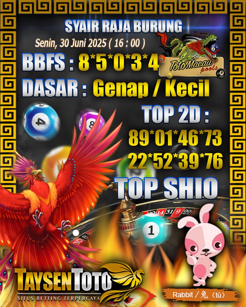 Syair Raja Burung Toto Macau Hari, Juni, 30 Juni 2025| 22 : 00 WIB